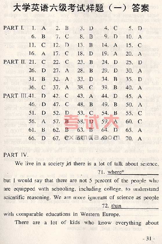 全国大学英语六级考试样题(25)