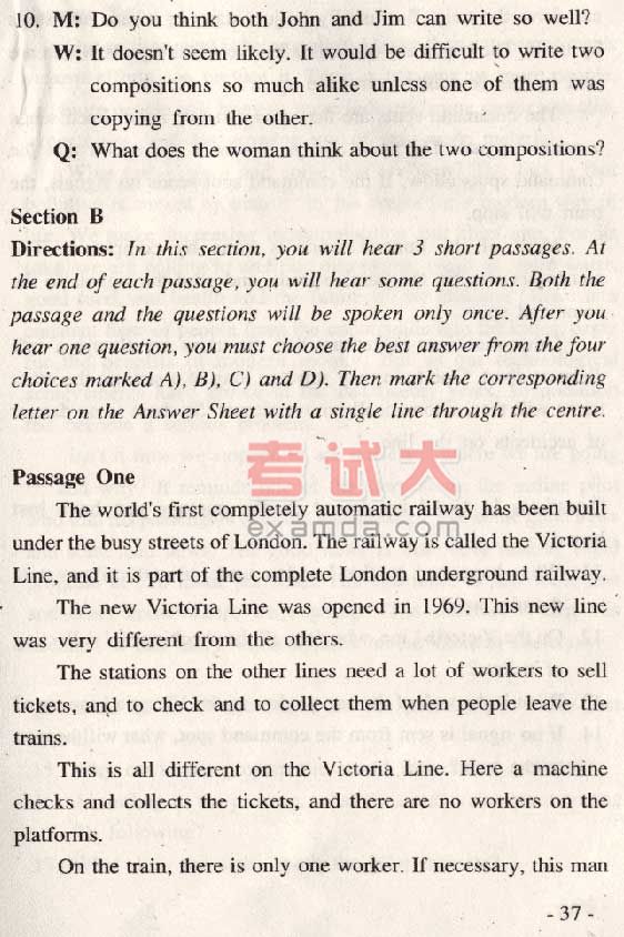 全国大学英语六级考试样题(31)