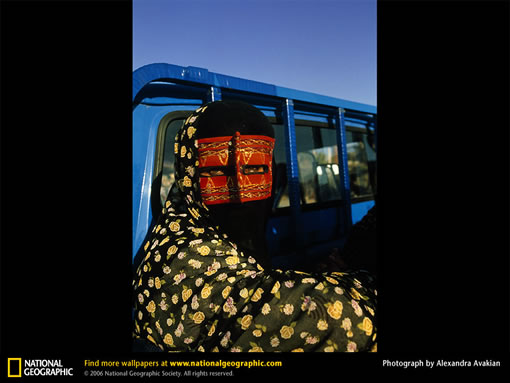 A Baluchi woman wears a traditional red mask to conceal her features from public view. Iranian women are, in fact, among the most educated and accomplished in the Muslim world. Before the 1979 revolution 35 percent of women were literate; now the rate stands at 74 percent. In 1999, one in three Iranian physicians was a woman.