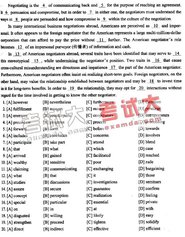 挑战六级710分完形填空(十三)