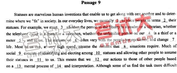 挑战六级710分完形填空(九)