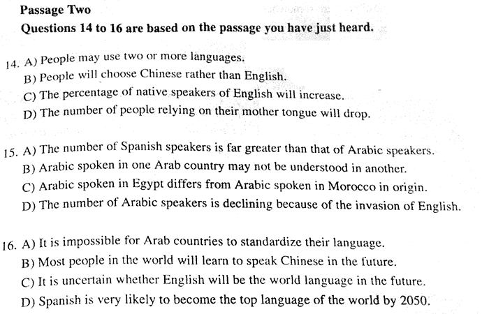 2006年12月英语老六级考试试题及参考答案(4)