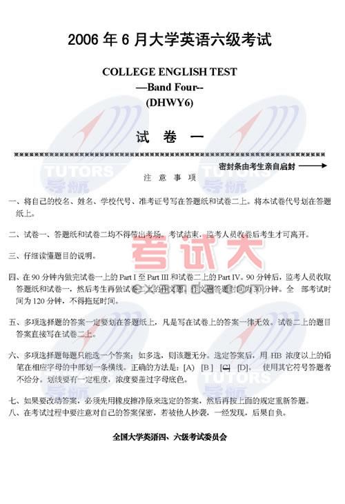 2006年6月17日大学英语六级B卷真题
