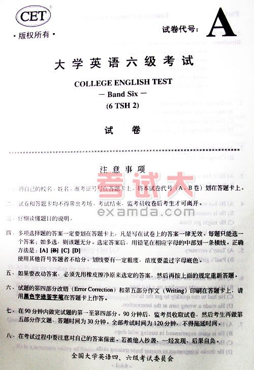 2006年6月17日大学英语六级A卷真题