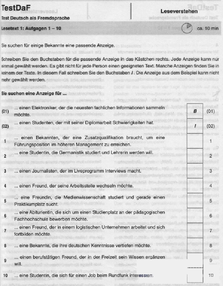 阅读理解部分--德语德福(DaF)考试模拟试题1