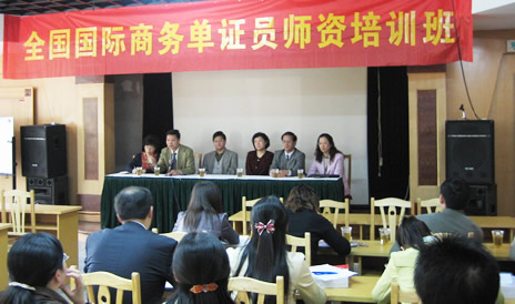 姚大伟教授对师资培训班的筹备情况和教学安排作了介绍。他说,本次培训班旨在帮助各地培训中心全面了解单证考试课程的重点内容以及教学方式,把握教材中的重点及难点,例如单证流转、单证缮制、单证审核。从外贸企业的角度出发去看问题,重点教会考生如何去进行单证缮制,着重培养考生的实际操作能力。为此,师资培训班特别邀请了国内高校、外贸企业、银行的专家、教授授课,如国际商会信用证专家周星、天津财经大学王捷副教授、上海外贸学院舒红副教授、东方创业股份有限公司吴洁经理、宝龙货运有限公司陈捷总经理、广东省对外贸易学校罗凤翔副校长等。本期培训班已于4月28日结束,对参加考试成绩合格者颁发培训师资格证书,并予以公示。