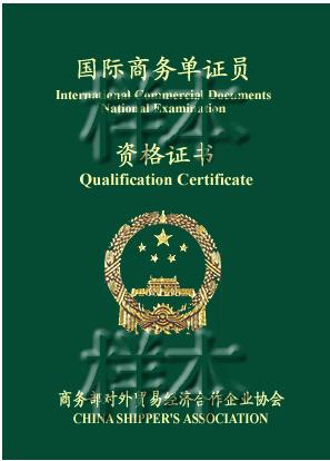 国际商务单证员资格证书样本