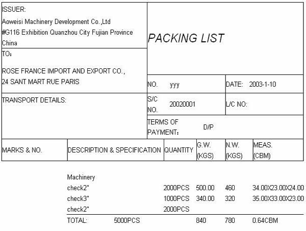 EDI通用装箱单模板