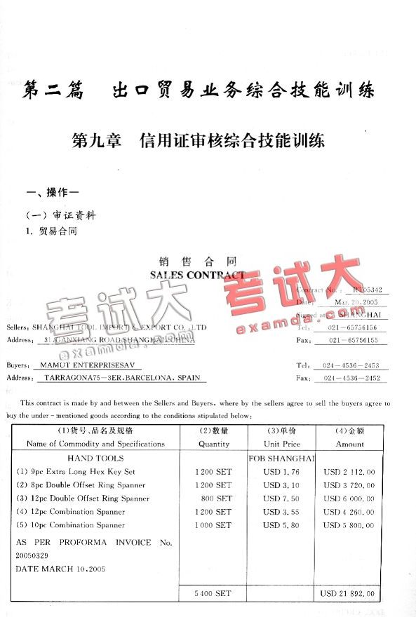 第二篇出口贸易业务综合技能训练(一)