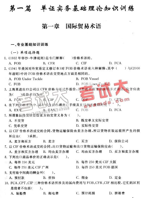 第一章篇单证实务基础理论知识训练(一)
