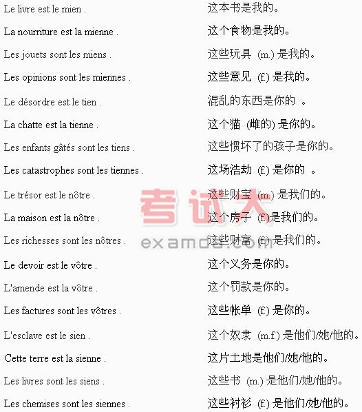 法语语法:物主代词
