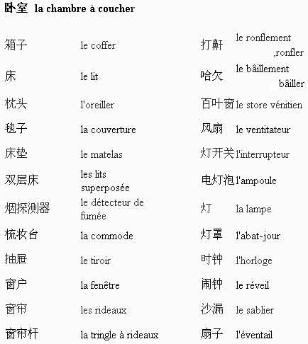 法语生活小词汇:卧室