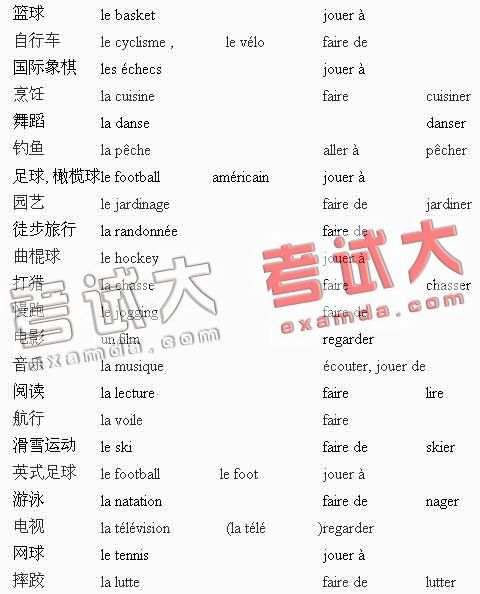 法语词汇:业余爱好