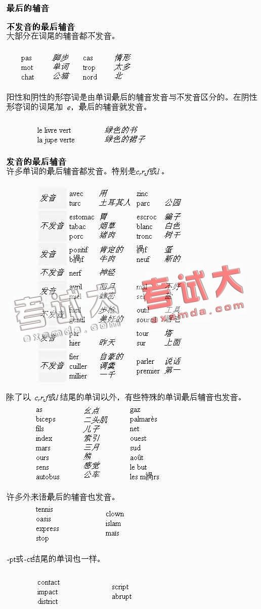 法语发音:最后的辅音