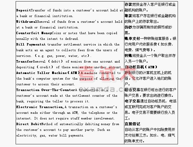 金融英语词汇:业务