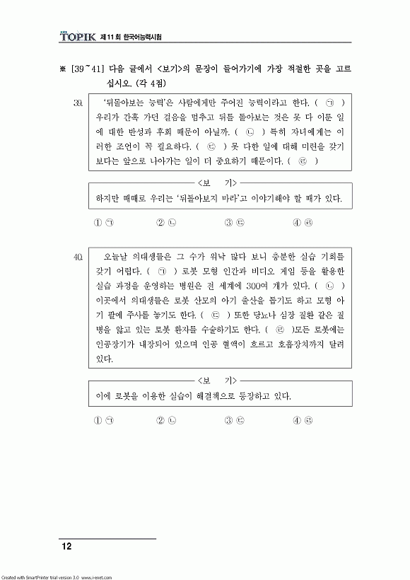 2007年4月韩国语能力考试(TOPIK)高级2级真题(12)