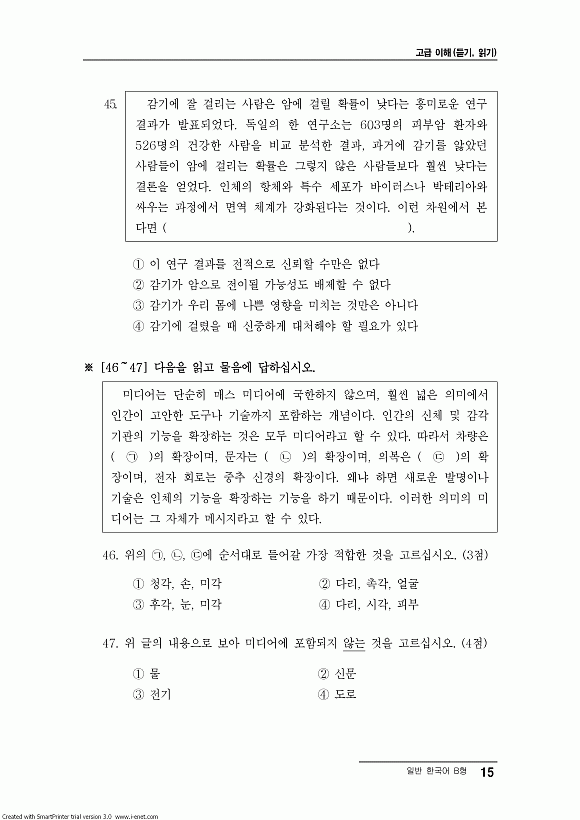 2007年4月韩国语能力考试(TOPIK)高级2级真题(15)