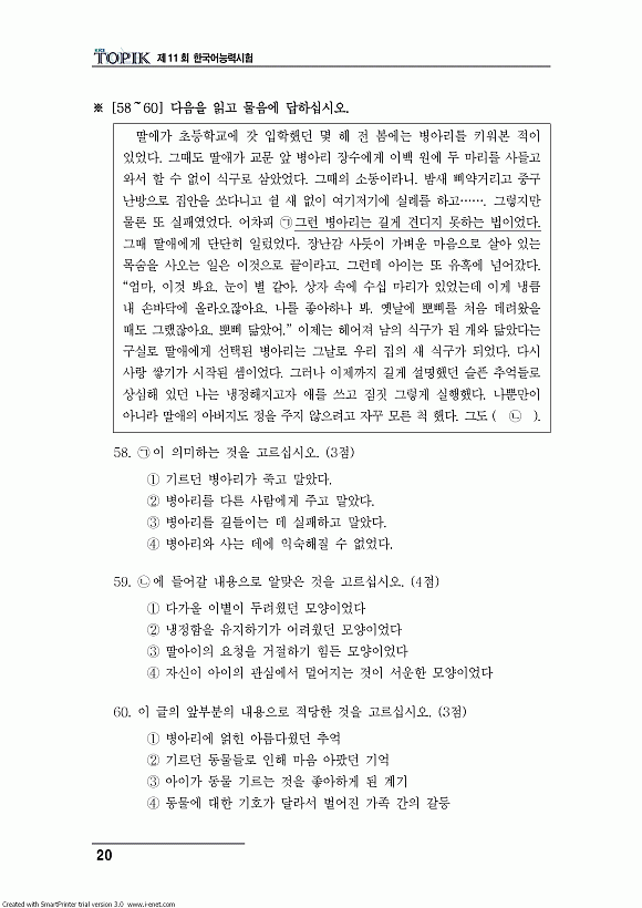 2007年4月韩国语能力考试(TOPIK)高级2级真题(20)