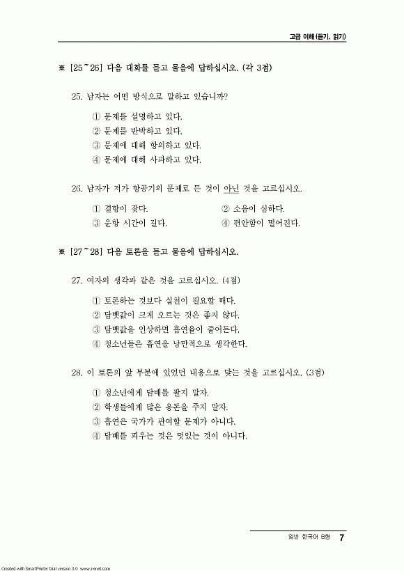 2007年4月韩国语能力考试(TOPIK)高级2级真题(7)
