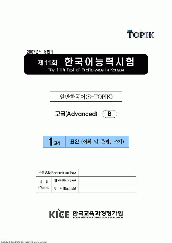 2007年4月韩国语能力考试(TOPIK)高级1级真题