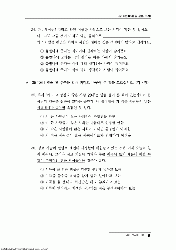2007年4月韩国语能力考试(TOPIK)高级1级真题(11)