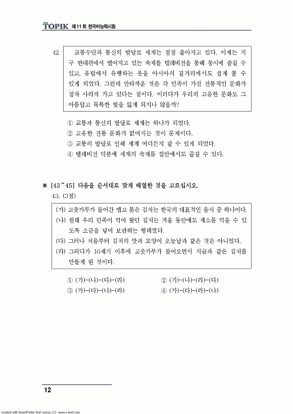 2007年4月韩国语能力考试(TOPIK)中级2级真题(14)