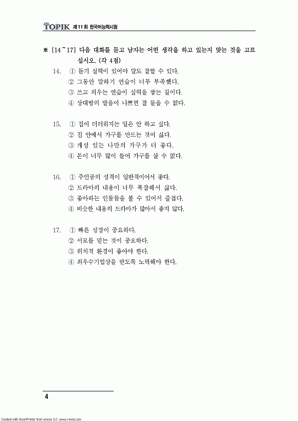 2007年4月韩国语能力考试(TOPIK)中级2级真题(6)