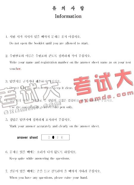 2007年4月韩国语能力考试(TOPIK)初级1真题(2)