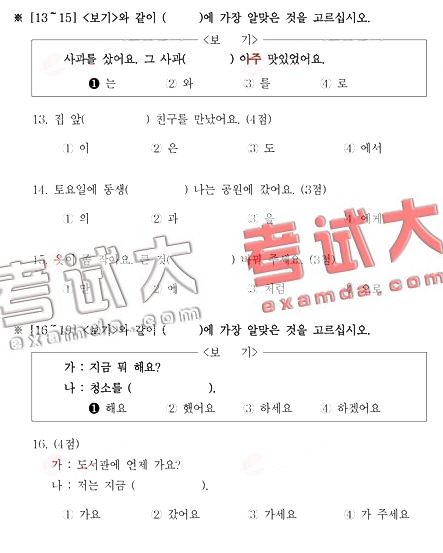 2007年4月韩国语能力考试(TOPIK)初级1真题(6)