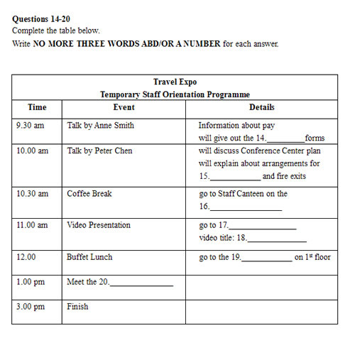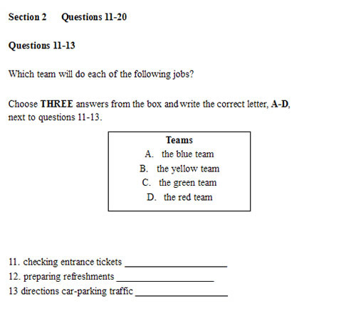 Answer:Section 2 Questions 11-2011-13. D, A, C14. tax15. security16. ground floor17. lecture room 31118. Safety at work19. Main Hall20. team leaders