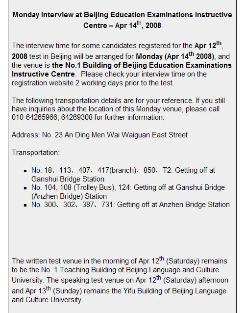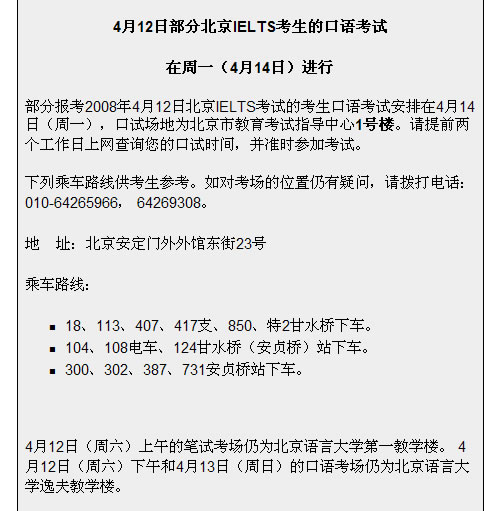 4月12日部分北京IELTS考生口语考试改期