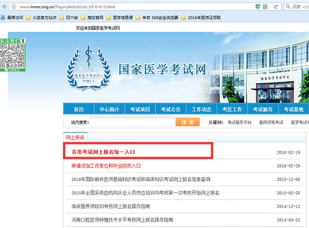 1.进入国家医学考试网(http://www.nmec.org.cn/),点击【网上报名】→【各类考试网上报名统一入口】