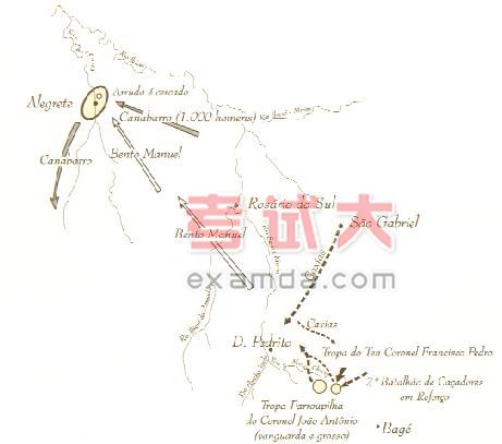 Seguiram-se outros combates em Piratini (27 de junho de 1843); em Encruzilhada (4 de dezembro), onde foi morto o Coronel Agostinho de Melo; em Santa Rosa, próximo ao Butuí (26 de dezembro) e em Picada Xavier, no final do ano, onde morreu o Major Agostinho Gomes Jardim.