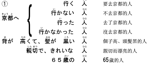 日語中在修飾名詞時,不論是單詞還是句子,修飾的部分一定放在被修飾部分之 前。本課中我們將學習上述方法以外修飾名詞的方法。