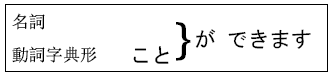 「 できます 」是表示能力和可能的動詞。「 が 」前面的名詞、「動詞字典形 こと 」表示能力或可能的內容。