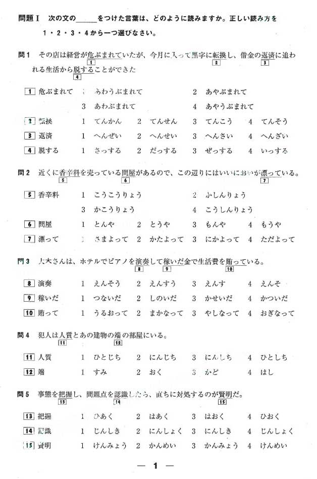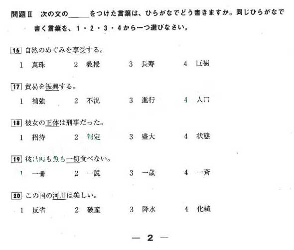 2007年日语能力测试一级真题及答案----文字*词汇部分
