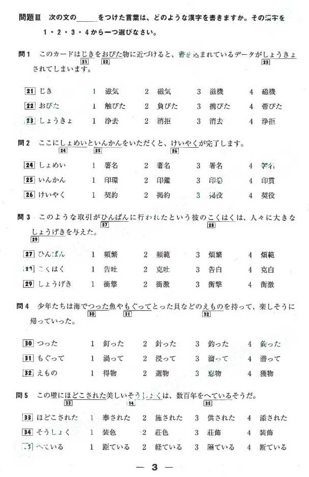 2007年日语能力测试一级真题及答案----文字*词汇部分(2)