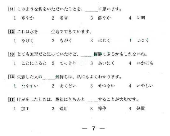 2007年日语能力测试一级真题及答案----文字*词汇部分(4)