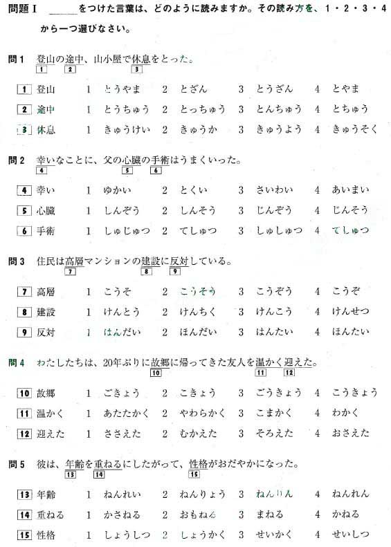 2007年日语能力测试二级真题及答案----文字*词汇部分