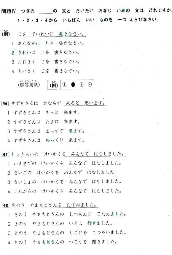2007年日语能力测试三级真题----文字*词汇部分(4)