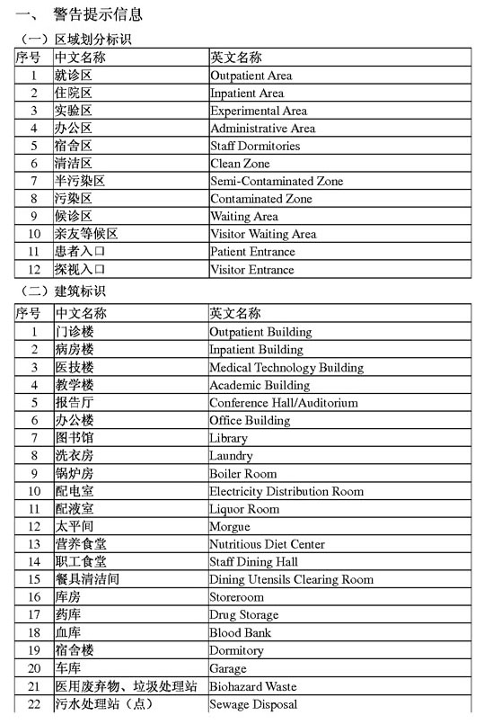 医疗卫生警告提示信息双语标识英文译法
