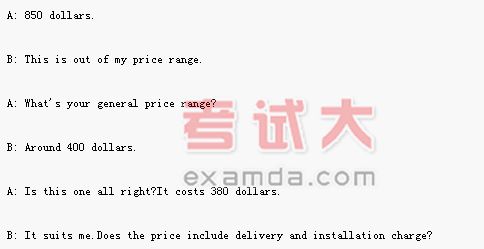 A: Is this one all right?It costs 380 dollars.那这个怎么样?只卖380元.