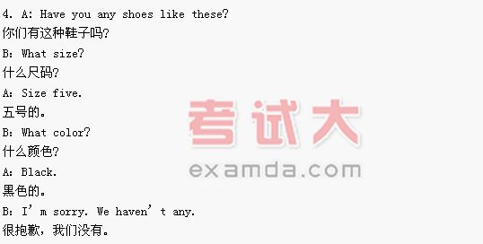 B:I like the color very much. It’s a lovely dress, but it’s too small for me.