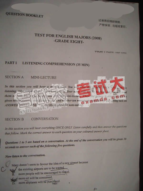 08年3月9日英语专业八级真题及答案