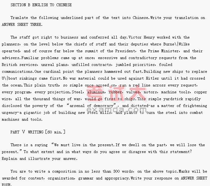PART Ⅳ TRANSLATION [60 min.]