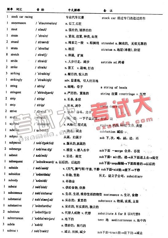 TOEFL考试必备词汇频率统计及注释笔记二十三(2)