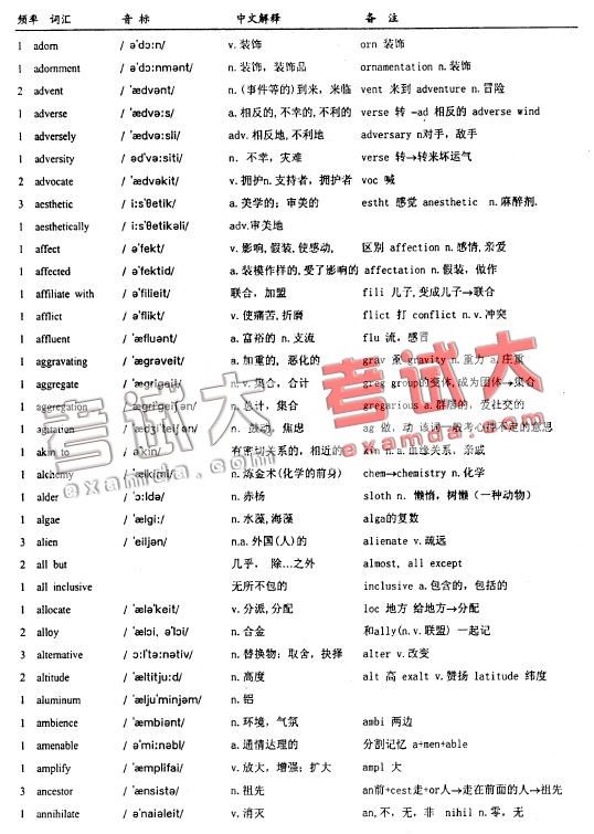 TOEFL考试必备词汇频率统计及注释笔记一(2)