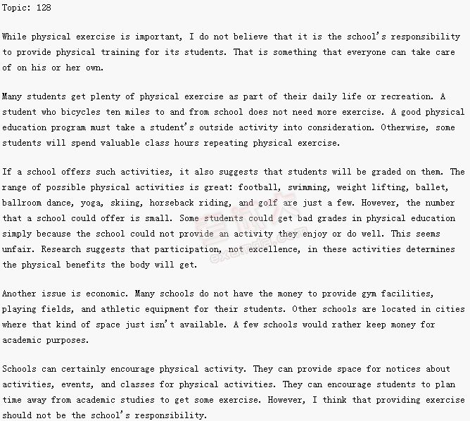 Topic128:你是否同意体育应当成为学生在学校每日生活的一部分?