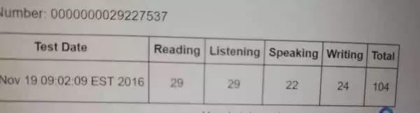 说出来很多人可能会感到惊讶,我托福从2015年5月第一次考试到2016年11.19一共考了8次,成绩分别是 76 ,76,84,94,94,93,94,104。可以看到的是从第四次开始就一直是94,第6次还跌了1分。当我考完第7次的时候(10.22场),真的是信心满满啊,感觉一定能过了,然后出分那天晚上,熬夜到3点多都睡不着,第二天5点多特别困,但还是起来了,一查分94……当时一种绝望的心情油然而生,尤其是和我舍友从80多第一次上90那种喜悦形成鲜明的对比。