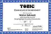 The TOEIC certificate exists in five colours, corresponding to distinct levels of results:orange (010-215), brown (220-465), green (470-725), blue (730-855) and gold (860-990).